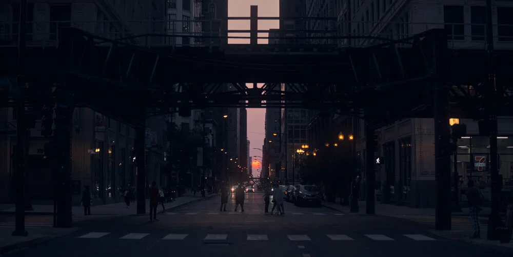 Hello! It has been a few months since I posted anything on this main blog page. The reason? The Two Ls: Laziness and Lack (of content). Here is some content I actually shot this week. The Autumn equinox was just a few days ago. During the Spring and Autumn equinoxes (give or take a few days) the setting sun will line up along the East-West streets, and the resulting scene between the buildings in downtown Chicago is pretty cool. I do not own a long enough lens to get close so I chose a cinematic presentation for my images. This was my first time shooting Chihenge so it was a learning experience. I will know what to expect next time. I only took a handful of shots and am leading this post with the best one, so there is no real reason for you to keep going, lol.